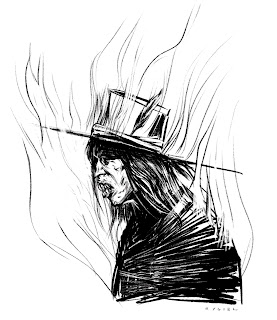 Czerwony Szeryf, As Płomieni z Domu La Rue. *CHARYZMA: 2k12, Dowodzenie 4, Tresura 3, Zastraszanie 5, DUCH: 3k12, Jaja 7, SIŁA: 4k8+2, SPOSTRZEGAWCZOŚĆ: 4k10, Przenikliwość 3, Szukanie 3, Tropienie 5, SPRAWNOŚĆ: 4k12, Jeździectwo 5, Pływanie 5, Skradanie 4, Uniki 6, Walka: szpony 5, Wspinaczka 4, SPRYT: 2k8, Blef 5, SZYBKOŚĆ: 6k10, Dobywanie: rewolwery 6, Dobywanie: karabiny 6, Dobywanie: strzelby 6, WIEDZA: 4k8, Wysadzanie 4, Znajomość terenu 4, WIGOR: 6k10, ZRĘCZNOŚĆ: 4k10, Strzelanie: rewolwery 6,Strzelanie: karabiny 6, Strzelanie: strzelby 6, TEMPO: 12, ROZMIAR: 8, DECH: NIE DOTYCZY. KLAMOTY: Stary prochowiec, poszarpany kapelusz, zniszczone buty z ostrogami, znikający dyliżans z koszmaru zaprzęgnięty w trzy pary płonących koni, broń. *Relikt 5 - Rewolwer “Poborca obietnic” - dwutaktowy rewolwer z napisem “każdy dług musi zostać spłacony - każda przysięga musi być dochowana” wykonany z Upiorytu, na który nieznana ręka naniosła dziwne, żarzące się ryty. Broń zapewnia +2 do umiejętności strzelanie: rewolwery, +2 do umiejętności dobywanie: rewolwery, +2 do umiejętności zastraszanie, zadaje obrażenia 5k6, umożliwia przerzucanie każdej 1 na trafienie, ignoruje 2 poziomy osłony. W bębenku rewolweru nigdy nie kończy się amunicja. Użytkownik reliktu przed każdą sesją wykonuje test dominacji na PT13. W przypadku oblania testu jest zmuszony odebrać należność od zadłużonego, który znajdzie się w towarzystwie posiadacza rewolweru, niezależnie od ceny, jaką przyjdzie zapłacić “dłużnikowi”. Wredny Szeryf będzie miał wolną ręka, aby wpakować Posse w kolejną kabałę. Właściciel broni nabywa zawady: Sługa ponurego żniwiarza 5 oraz Koszmary senne 5 i zaczyna śnić o należnościach, które za wszelką cenę musi odebrać.